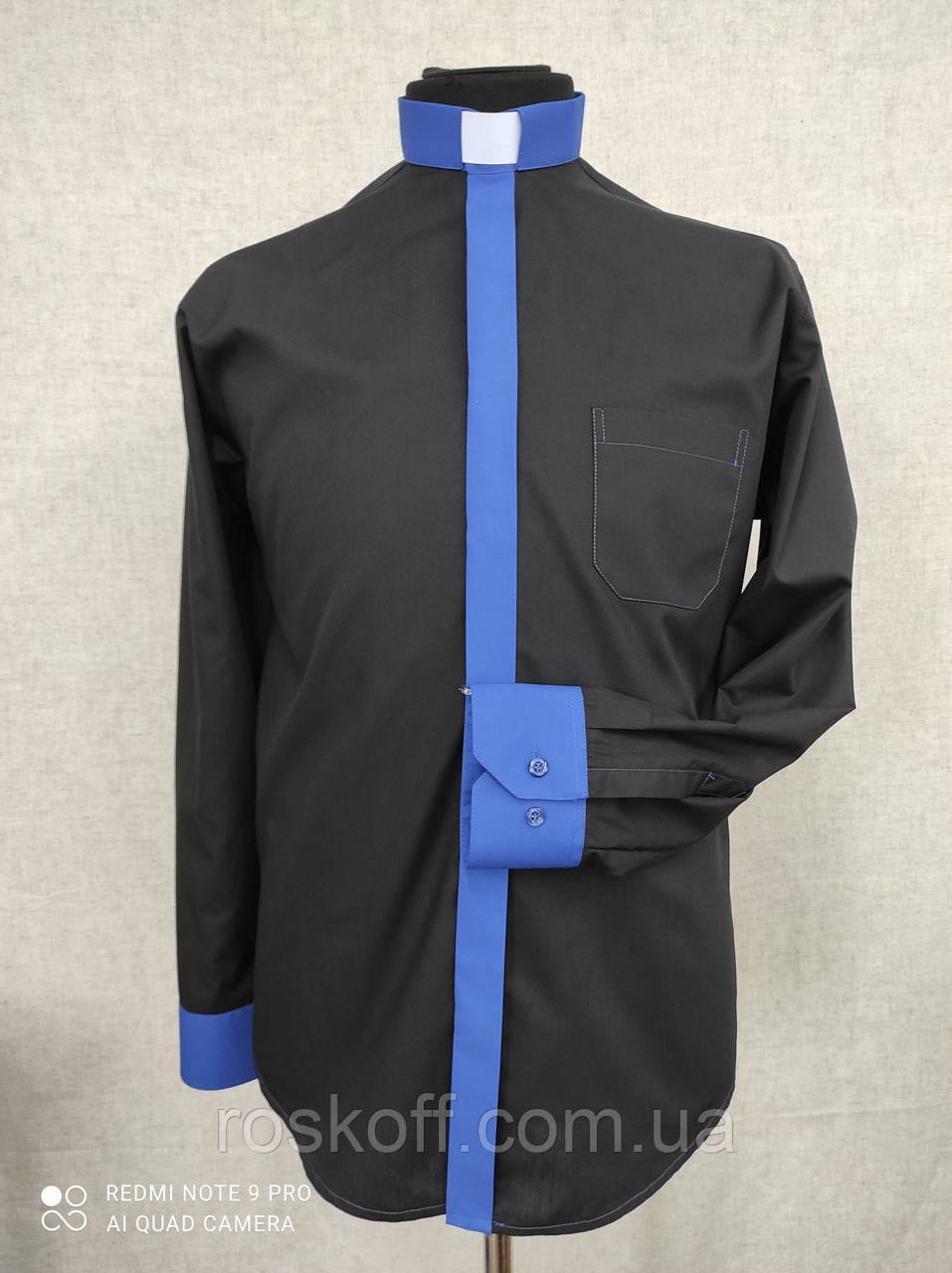 Сорочка для священників комбінована чорна з бордовим коліром чорний з синім
