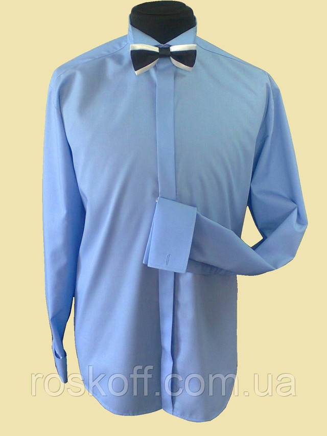 чоловіча сорочка блакитного кольору під краватку метелик на запонки